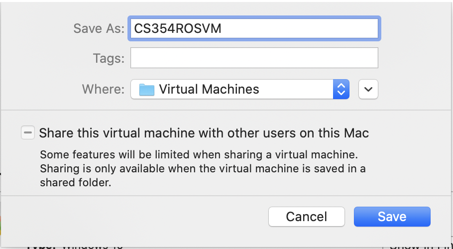 - Select a name for your VM and then click save (screen capture shown below)